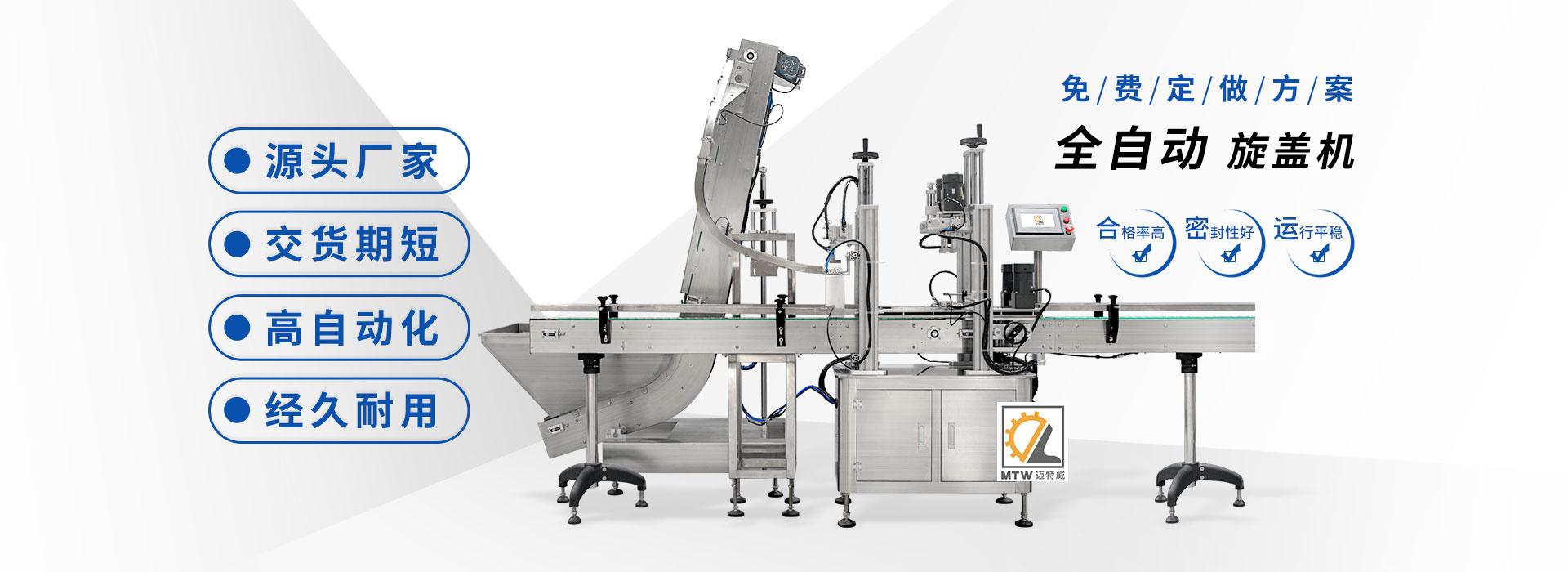 邁特威自動(dòng)化設(shè)備(天津)有限公司坐落于素有京津明珠之稱(chēng)的天津·武清區(qū),是國(guó)家高新技術(shù)企業(yè),專(zhuān)注生產(chǎn)、研發(fā)、銷(xiāo)售全自動(dòng)灌裝機(jī)、旋蓋機(jī)、封口機(jī)、貼標(biāo)機(jī)等系列產(chǎn)品,立足京津冀、服務(wù)全國(guó),遠(yuǎn)銷(xiāo)海內(nèi)外,團(tuán)隊(duì)由行業(yè)高技術(shù)人士組成,為國(guó)內(nèi)外食品、日化、糧油、醫(yī)藥等企業(yè)提供滿(mǎn)意的包裝解決方案。 查看詳情